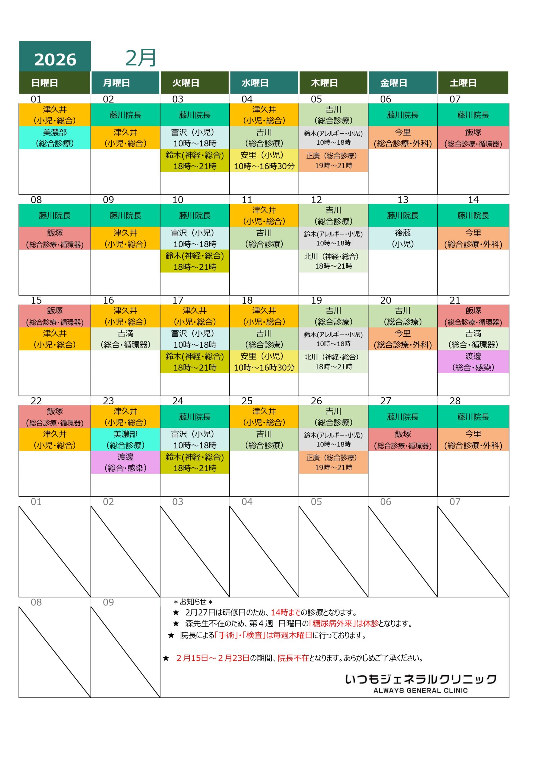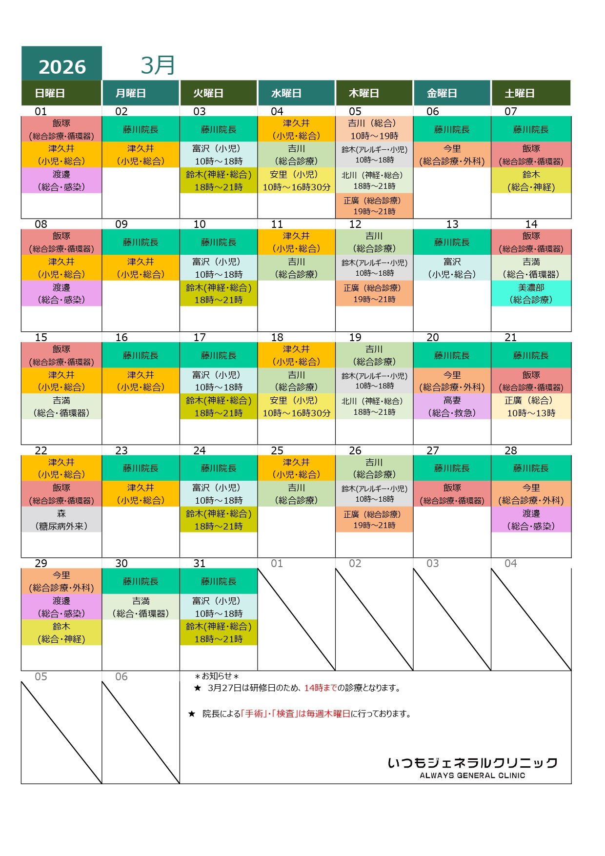 ★毎月最終金曜日は診察時間が10:00~14:00となります。