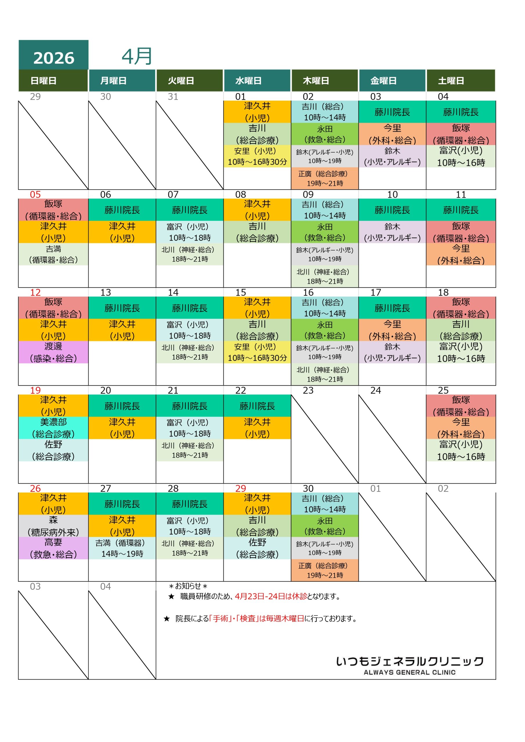 ★毎月最終金曜日は診察時間が10:00~14:00となります。